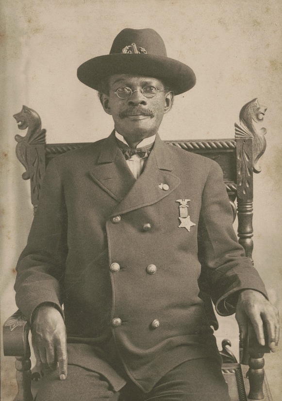 Jackson Ridgeway was 15 years old in September 1863 when he enlisted in Company F of the 2nd Kansas Colored Infantry at Leavenworth, Kansas. His unit was later redesignated as the 83rd U.S. Colored Infantry Regiment. Private Ridgeway was discharged at Camden, Arkansas in October 1865. After the war, Ridgeway changed his name to J.W. Pollard. This photograph was taken May 30, 1906 after he participated in a G.A.R. parade in Illinois. Jackson Ridgeway was born in Fauquier County, Virginia. – Photo: Library of Congress